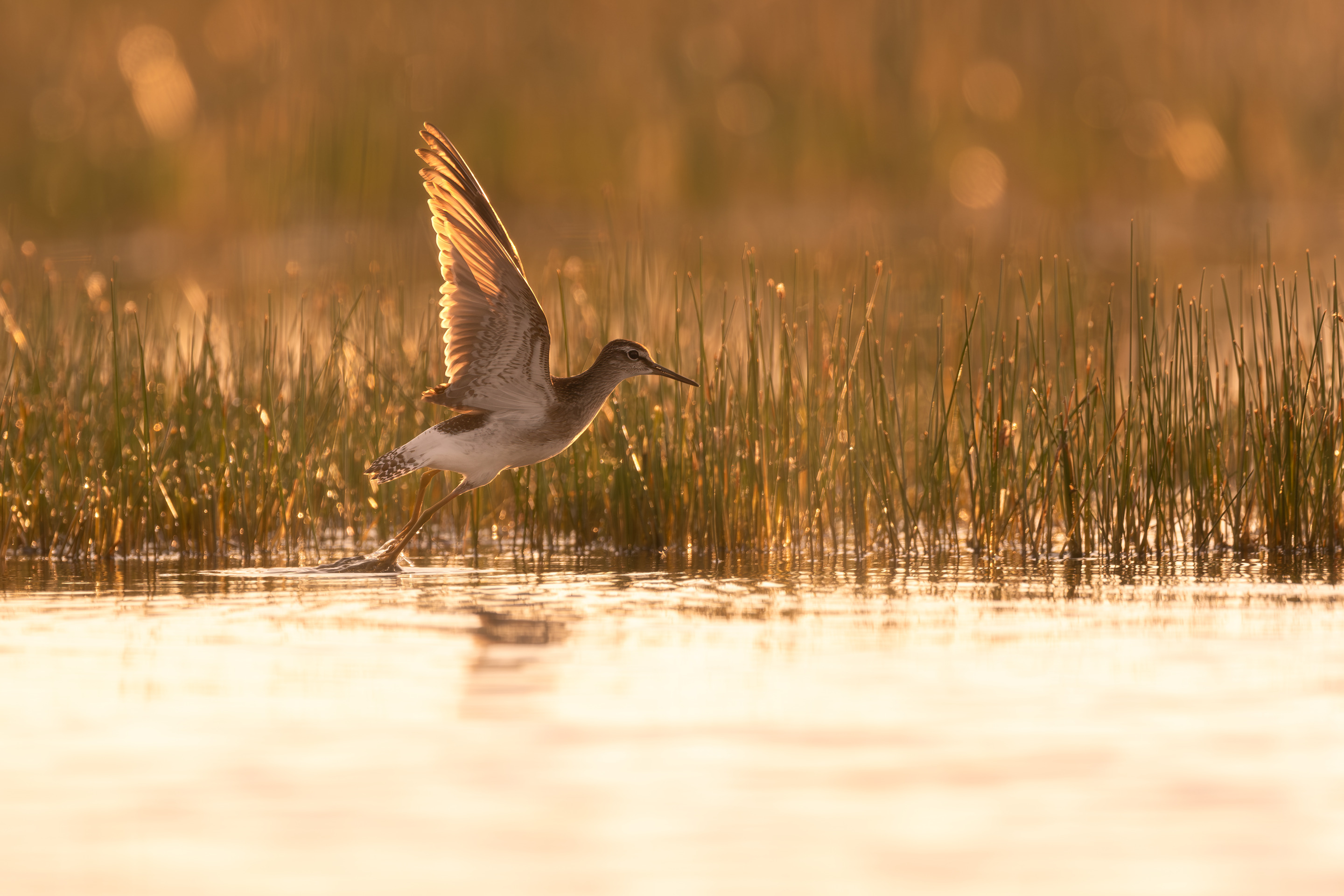 Grönbena lyfter från Norsholmen på norra Fårö en tidig sommarmorgon